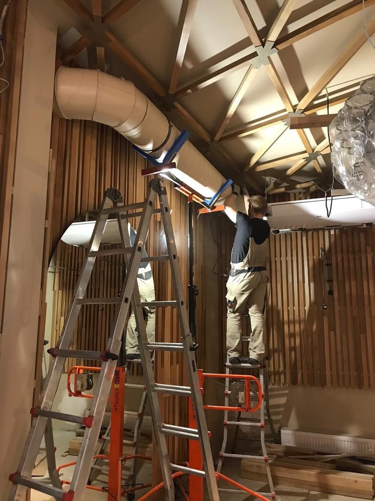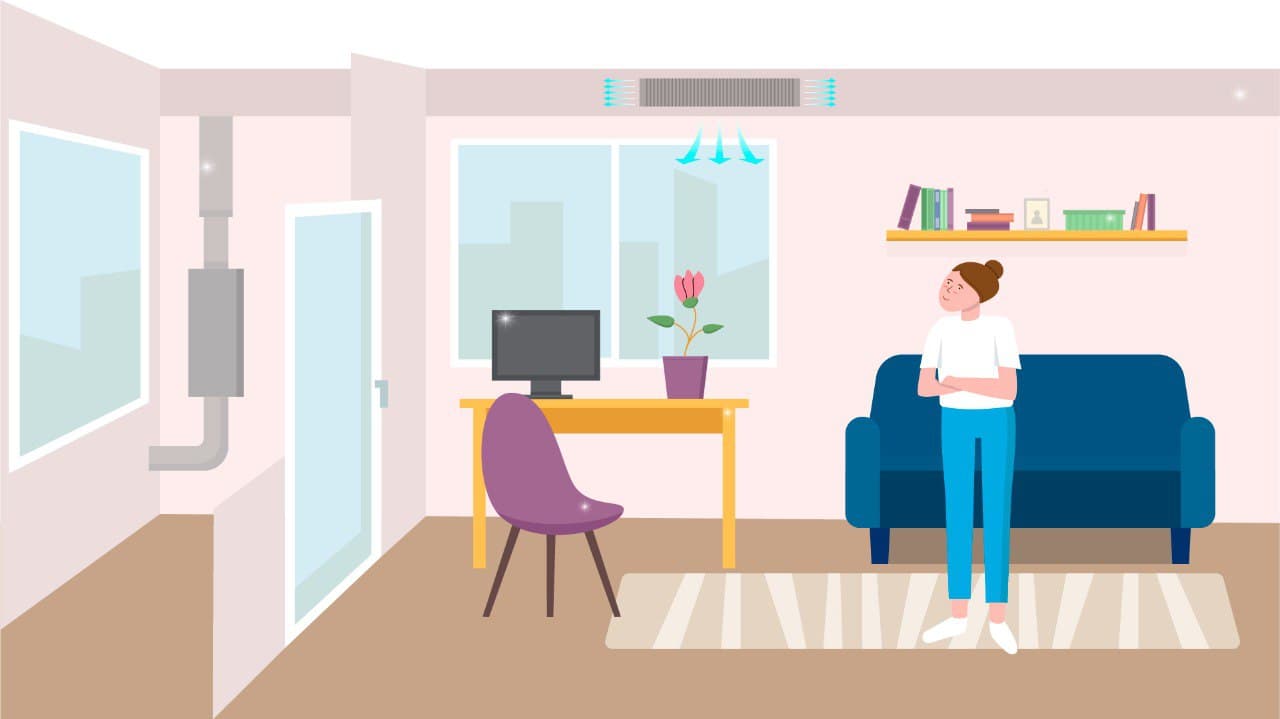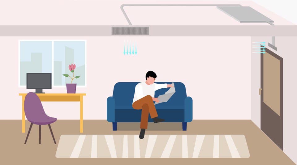 После прохождения системы фильтрации воздух прогревается до заданной температуры благодаря калориферу (нагревателю) и поступает в комнату.