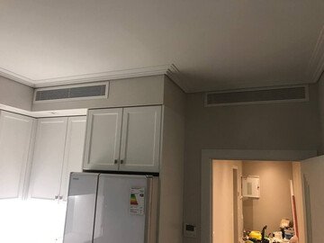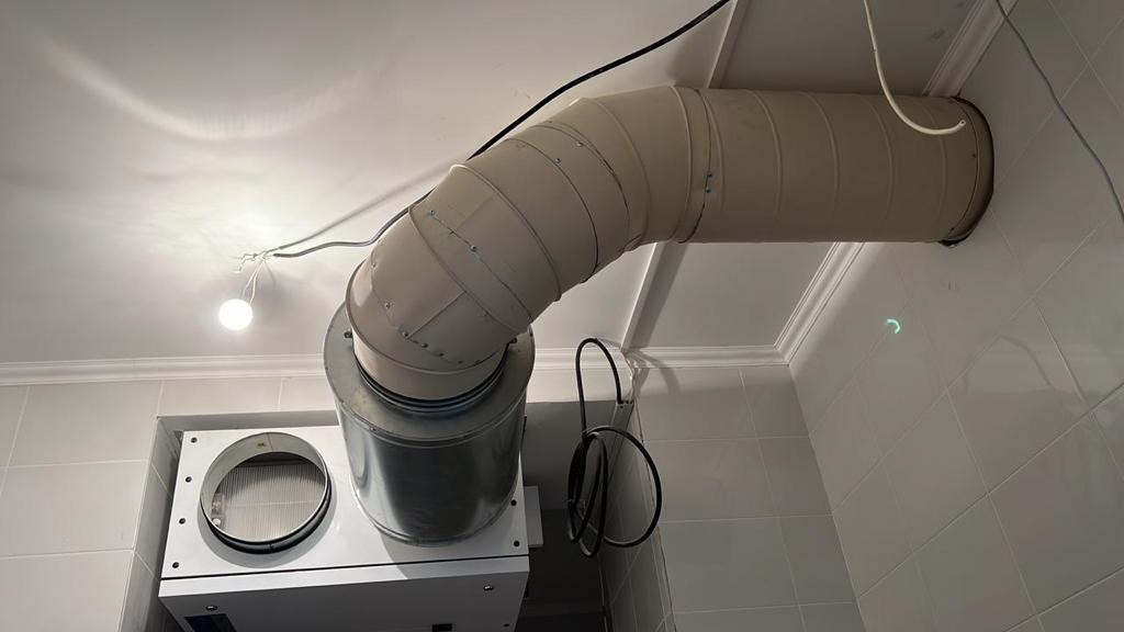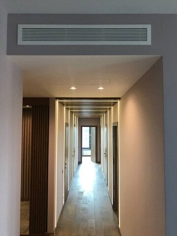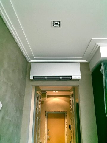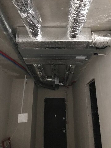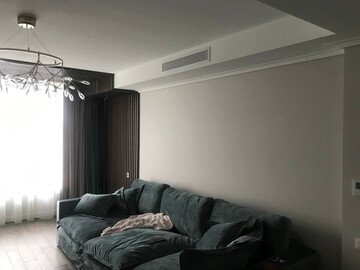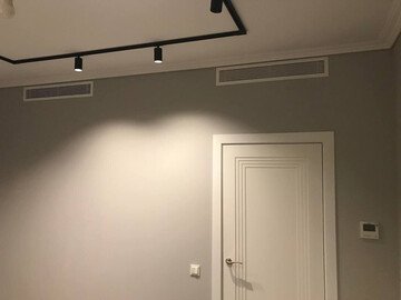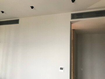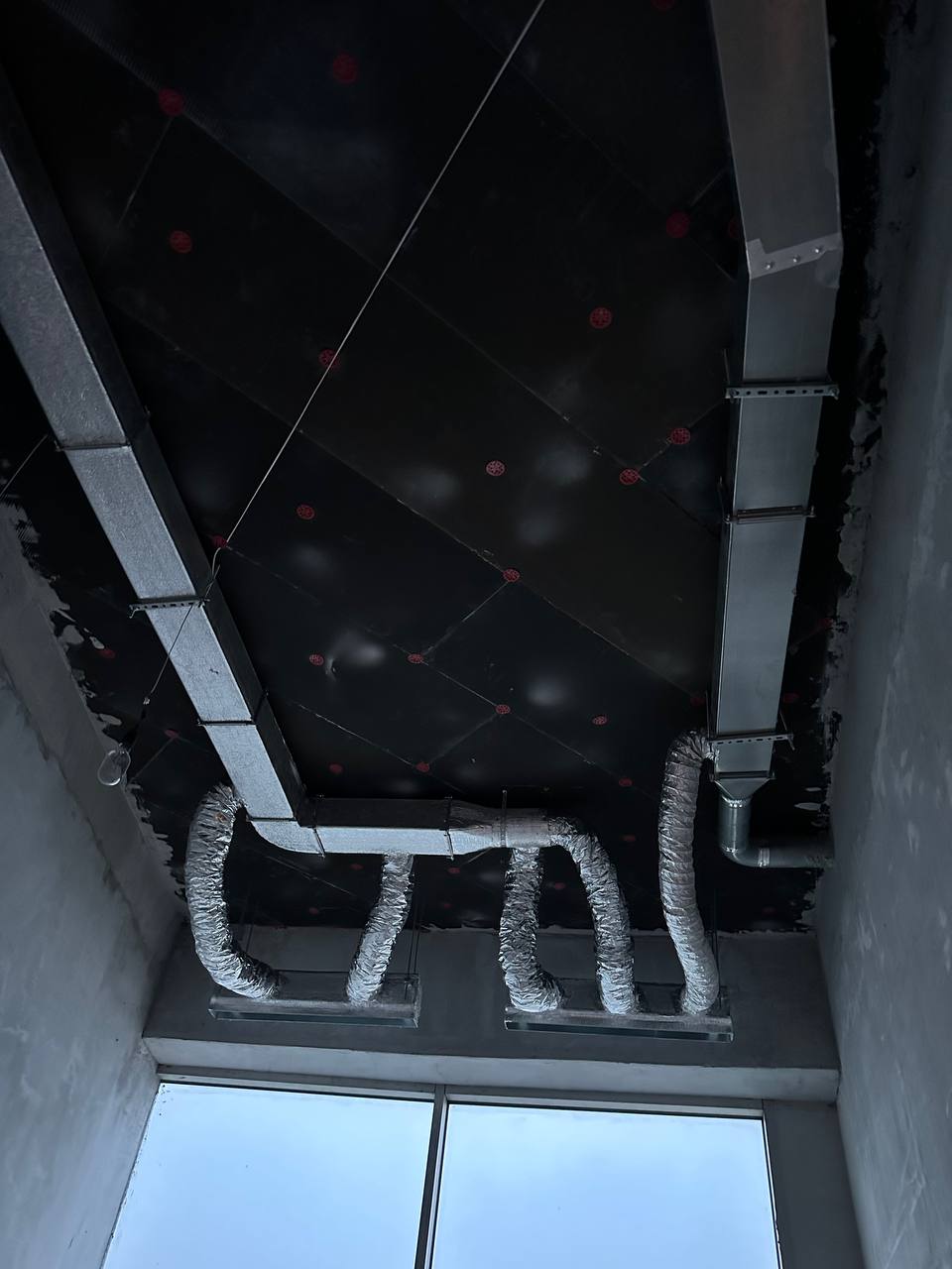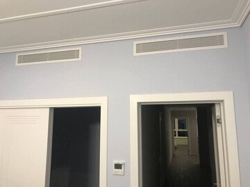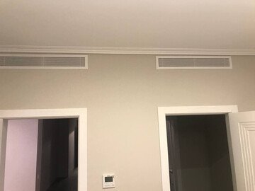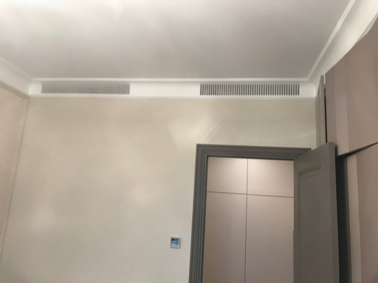 Установка приточной вентиляции осуществляется на стенах или потолке балкона, с/у, гардеробах. Сетевая часть вентиляции прячется в межпотолочное пространство и в жилых помещениях будут видны только решётки.