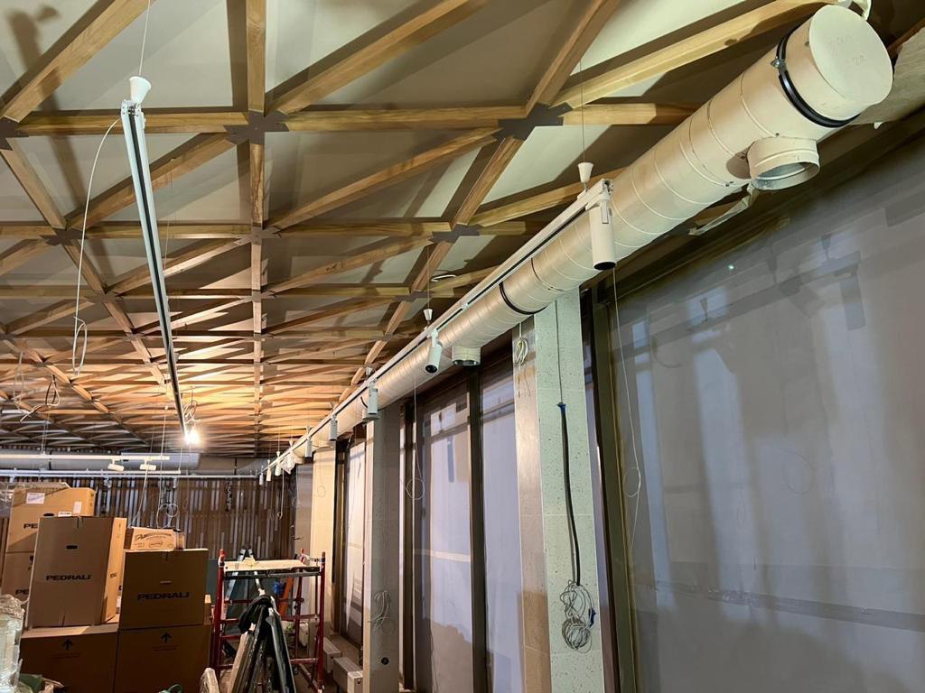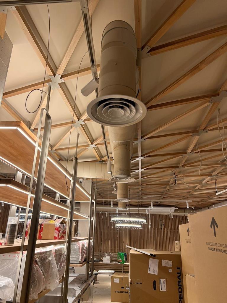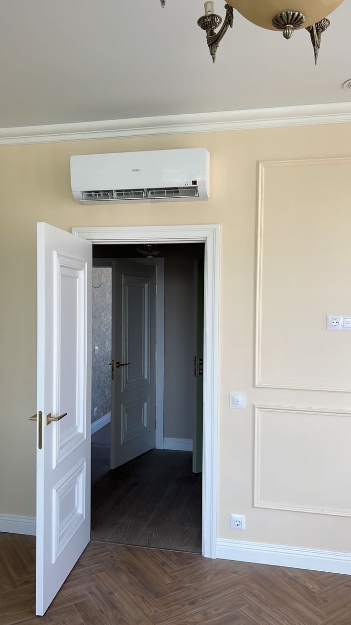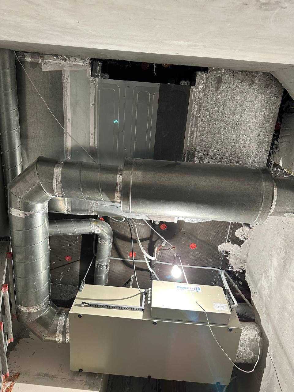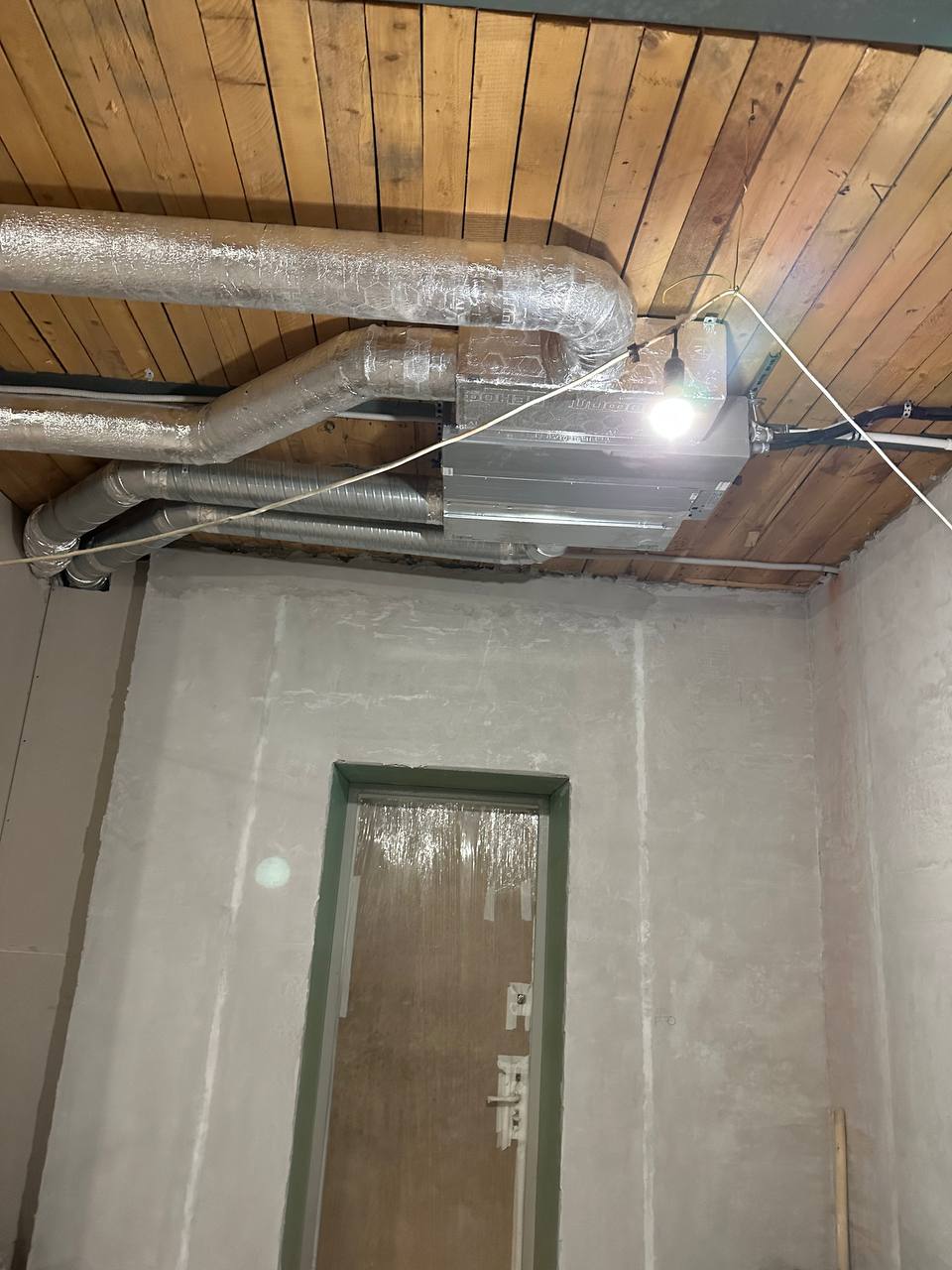 Установка приточной вентиляции осуществляется на стенах или потолке балкона, с/у, гардеробах. Сетевая часть вентиляции прячется в межпотолочное пространство и в жилых помещениях будут видны только решётки.